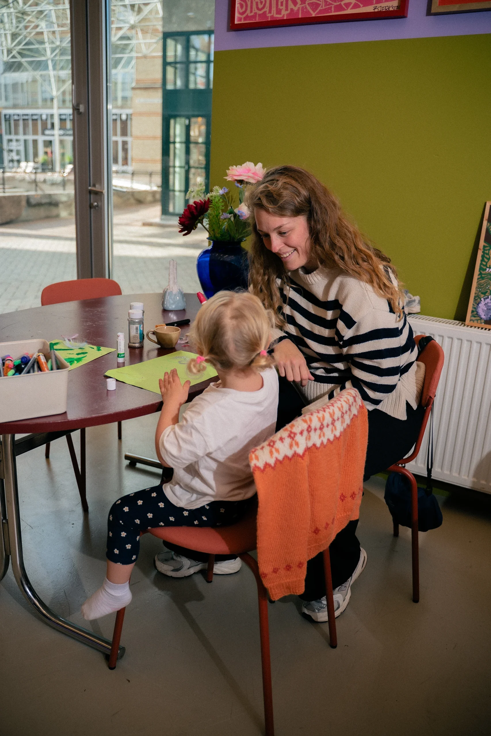 Kreativt værksted, med fokus på brugerne, alle kan deltage børn som voksne og bedste forældre, eneste krav er at du prøver, leg med, vær tilbage i skolen og klip, klister, skær, mal, lim og ikke mindst hyg jer, super måde at være sammen på