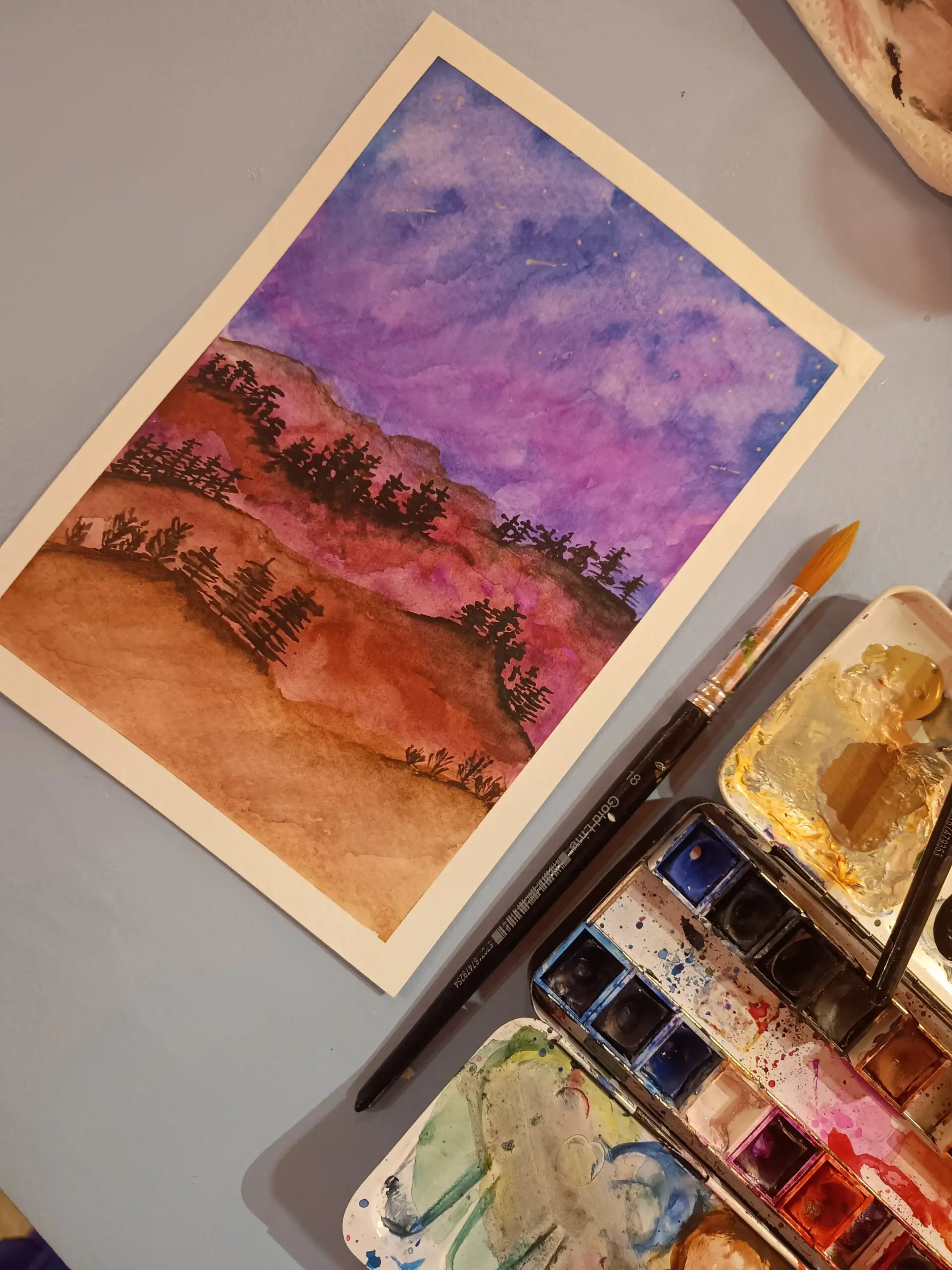 300grams A4 akvarelpapir, akvarelmaling og pensler.